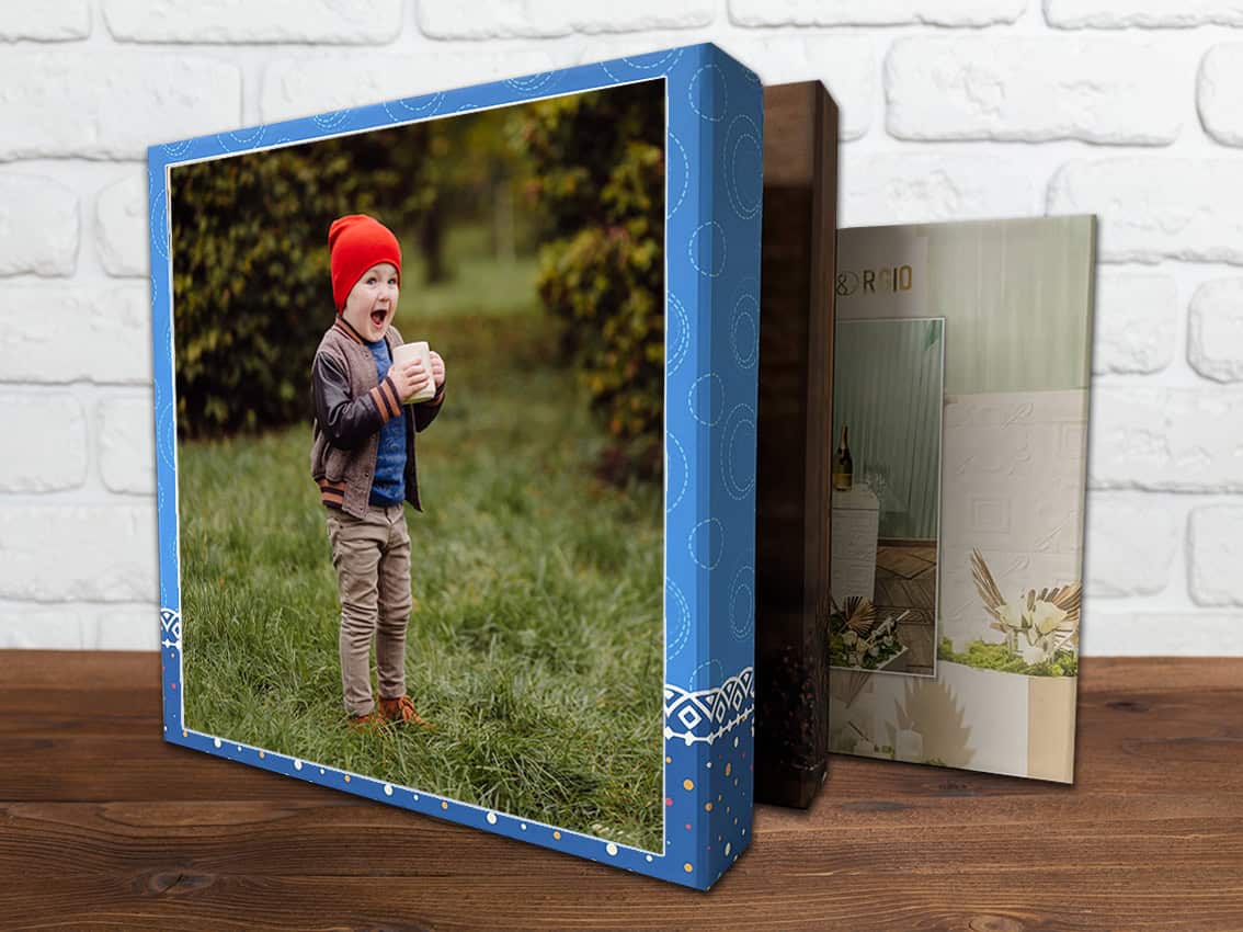 Box rivestito con stampa su carta fotografica plastificata, dalle infinite possibilità di personalizzazione.